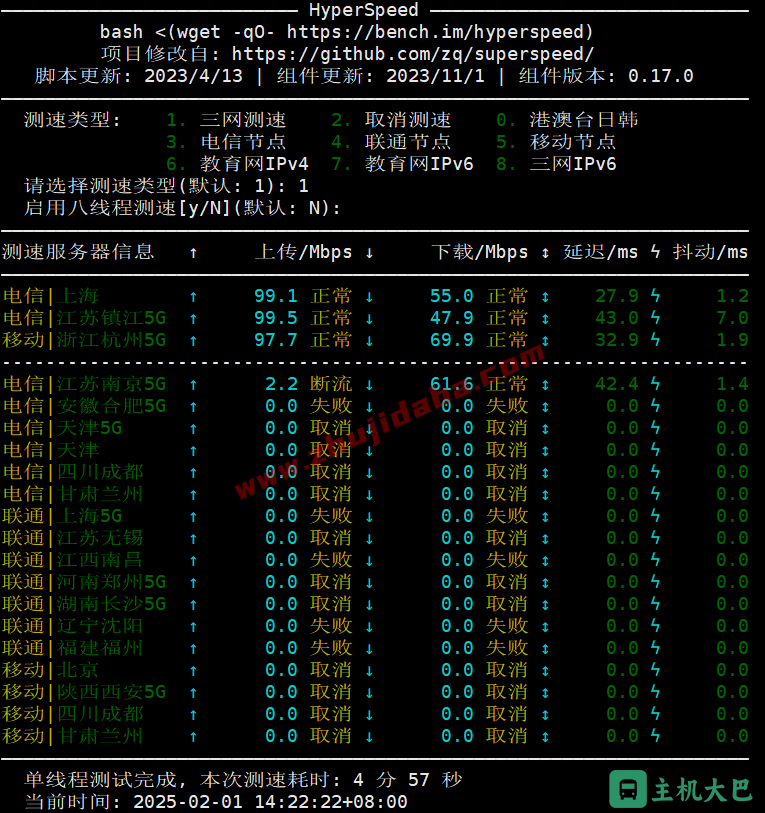 P.S. 通过融合怪一键测试脚本进行测试,不知道是脚本还是 VPS 主机原因,经多次中断重试、重装系统后重复运行脚本,均无法完整完成测试,都是卡在“回程路由 – 感谢 fscarmen 开源及 PR”长时间无法继续进行下去。